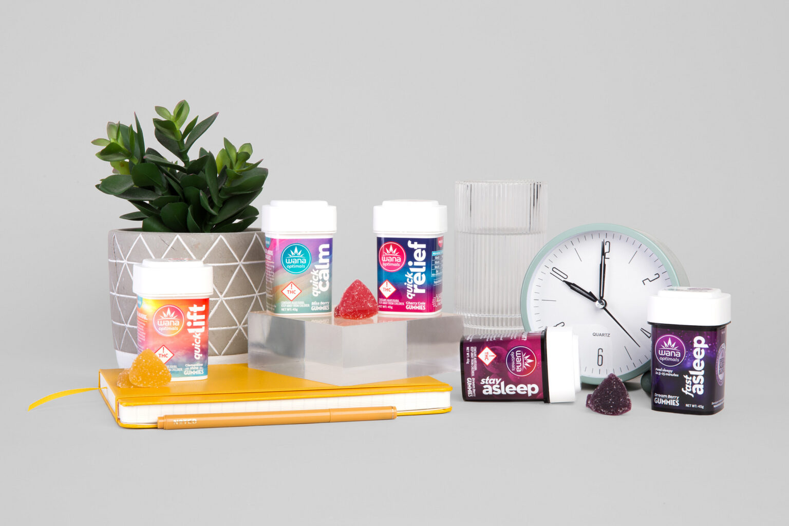 Wana’s first-of-its-kind “Optimals” line includes five calibrated formulations to help you optimize your life by delivering specific wellness-based effects like better sleep, mood enhancement, and stress or pain relief.